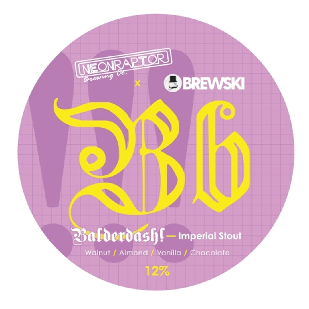 B is for Brewski, Brewskival, and bloody brilliant big beastly beers brewed with best buds. Balderdash is a signature Neon imperial stout base with walnut, almond and vanilla, and some Swedish mys thrown in for extra comfort. It's Balderlicious!